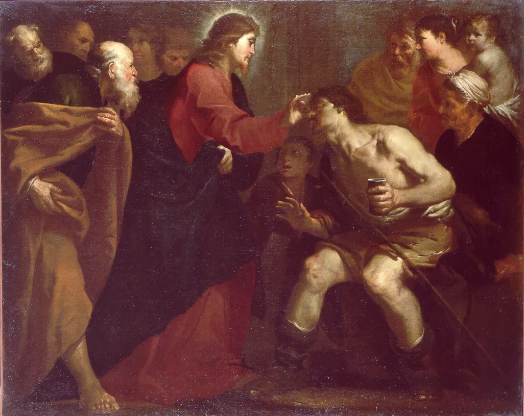 Passando vide un uomo cieco dalla nascita e i suoi discepoli lo interrogarono: «Rabbi, chi ha peccato, lui o i suoi genitori, perché egli nascesse cieco?». Rispose Gesù: «Né lui ha peccato né i suoi genitori, ma è così perché si manifestino in lui le opere di Dio. Devo compiere le opere di colui che mi ha mandato finché è giorno; viene la notte, quando nessuno può operare. Finché sono nel mondo, sono la luce del mondo». Detto questo, sputò per terra, fece del fango con la saliva, spalmò il fango sugli occhi del cieco e gli disse: «Va’ a lavarti nella piscina di Siloe (che significa Inviato)». Quegli andò, si lavò e tornò che ci vedeva.